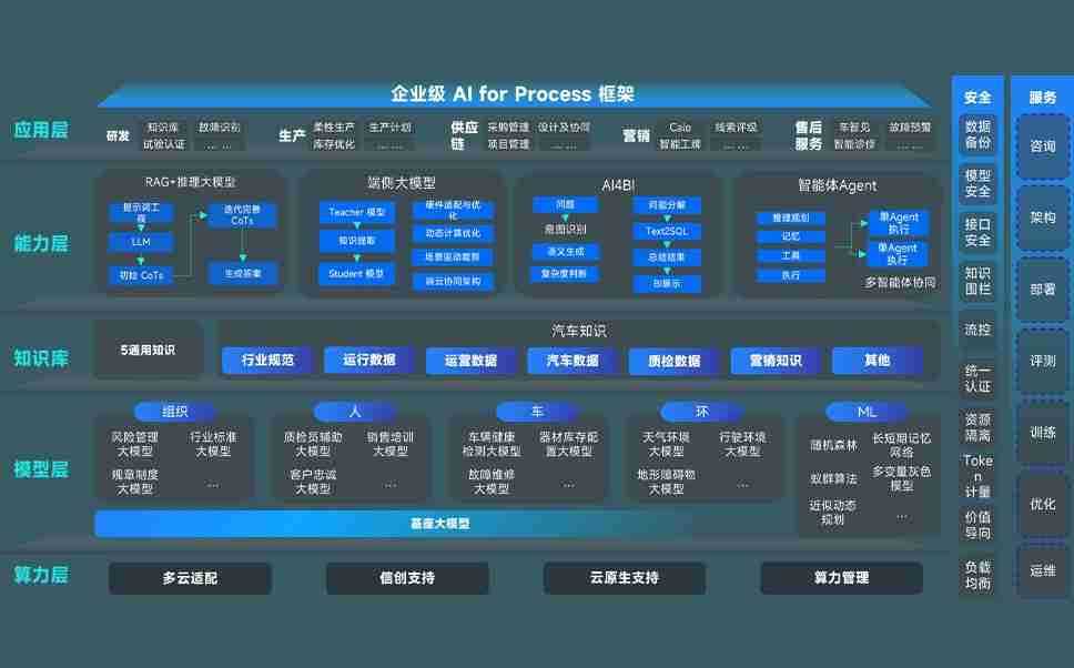 端到端的一站式AI工作空间深度融合了从企业战略规划到日常经营的全流程业务板块,,,定向解决车企内部领域多、、部门多、、链条长、、、、场景碎片化等难题,,支持车企快速构建以AI为核心的生产力写作体系,,实现任务执行与AI能力的无缝集成与交互
